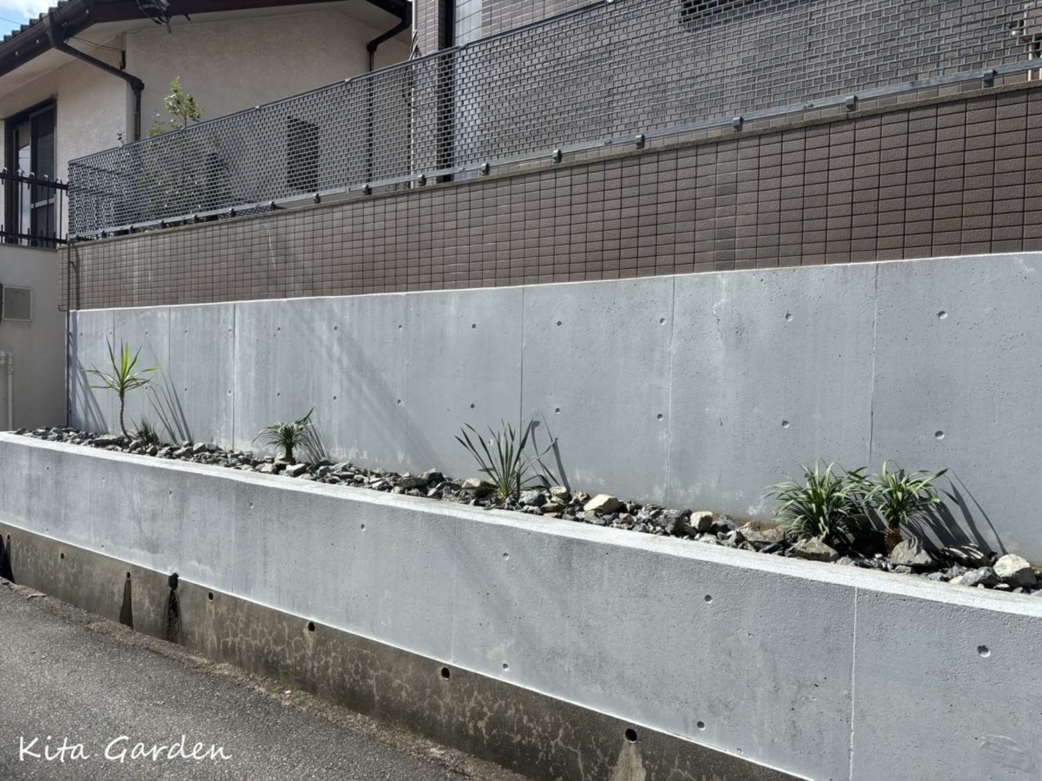 既存の植栽はすべて撤去し、栗石とドライプランツで新たに構成。