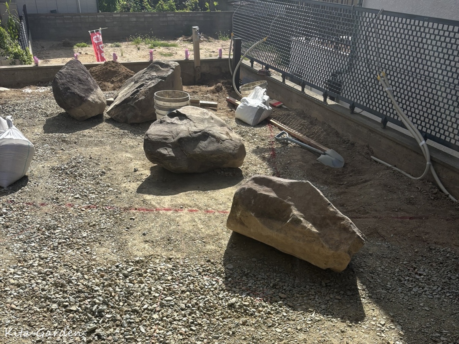 長年お庭を彩ってきた石が、再び新しい空間で生きる準備をしています。