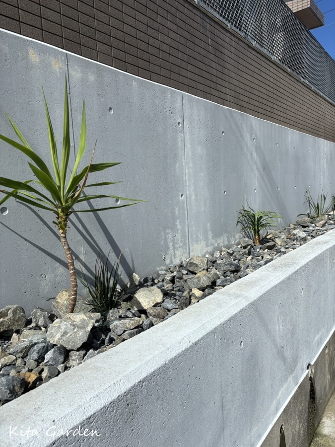 植栽はドライプランツで構成し、デザイン性と管理のしやすさを両立。