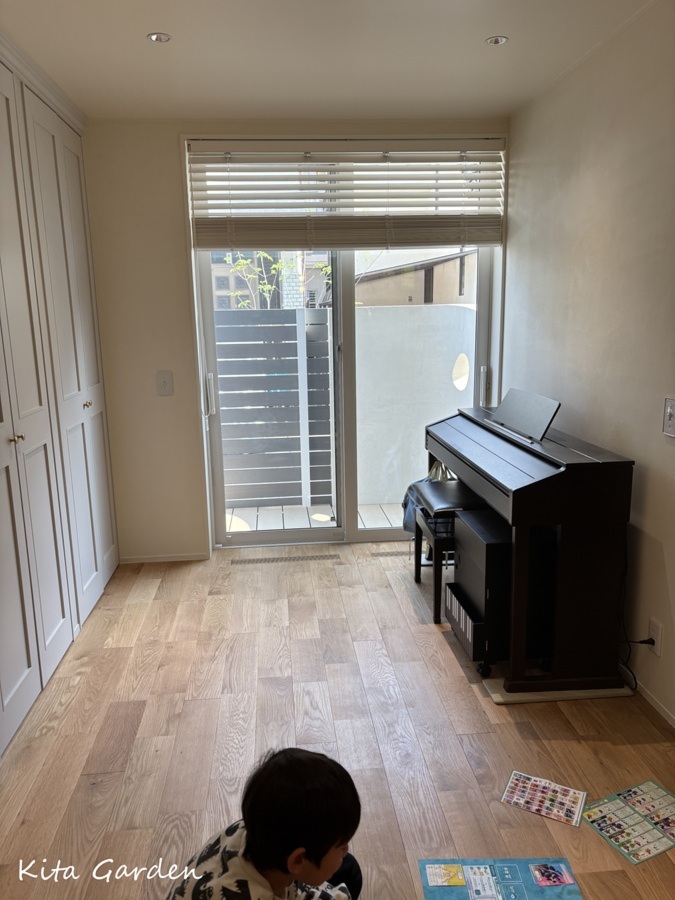 スリットから顔をのぞかせて遊ぶお子さまの姿も、家族の温かな日常の一コマ。