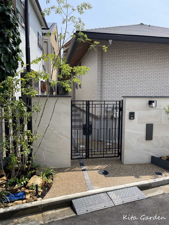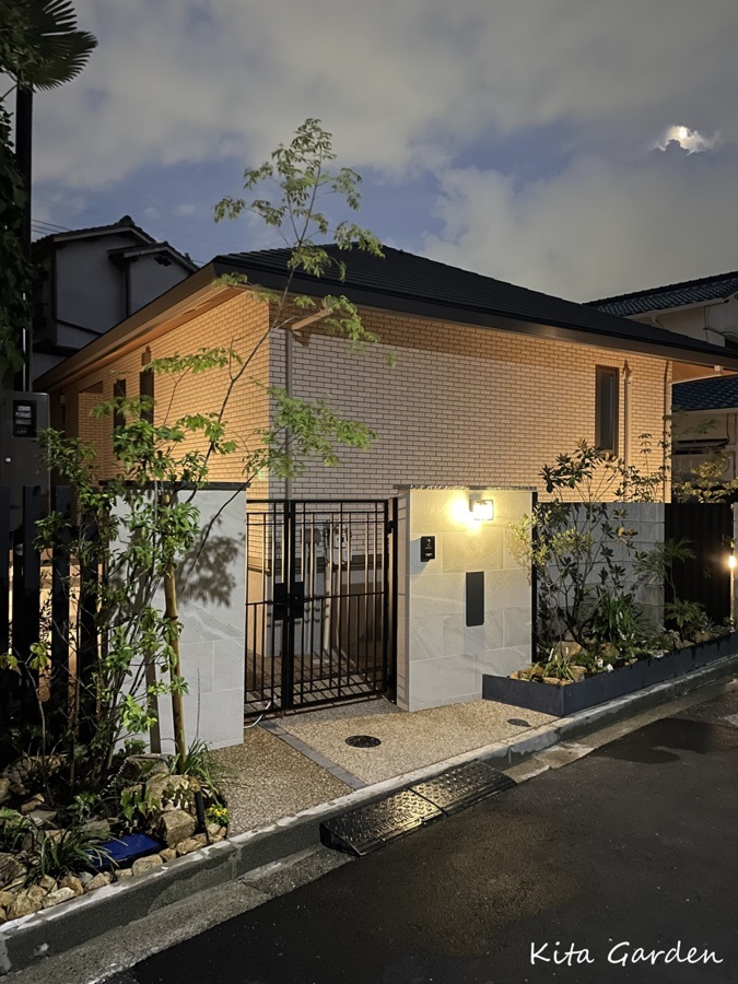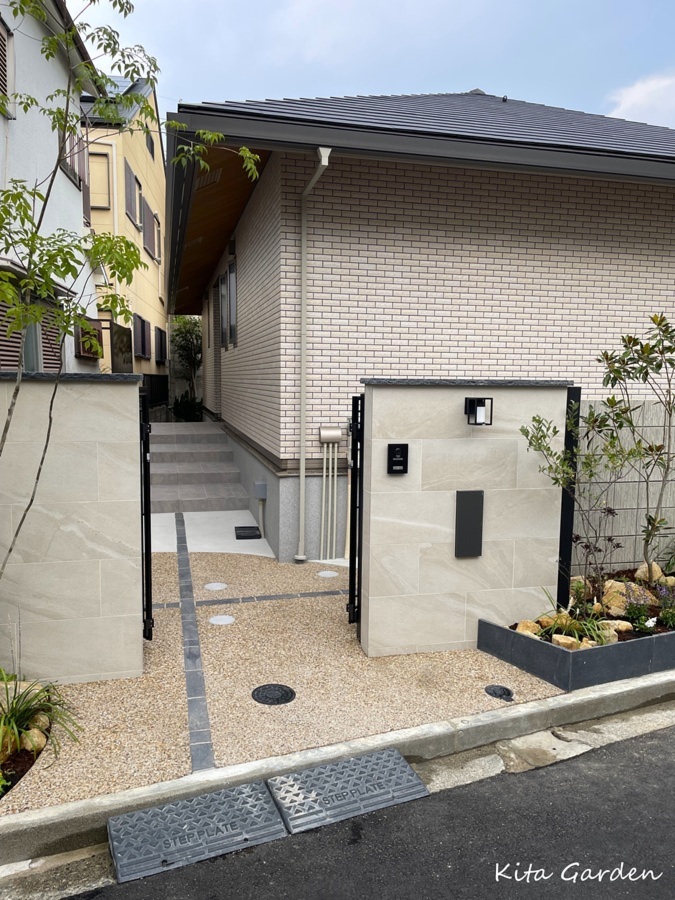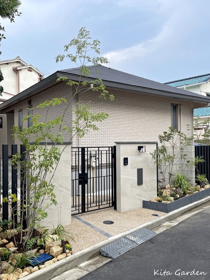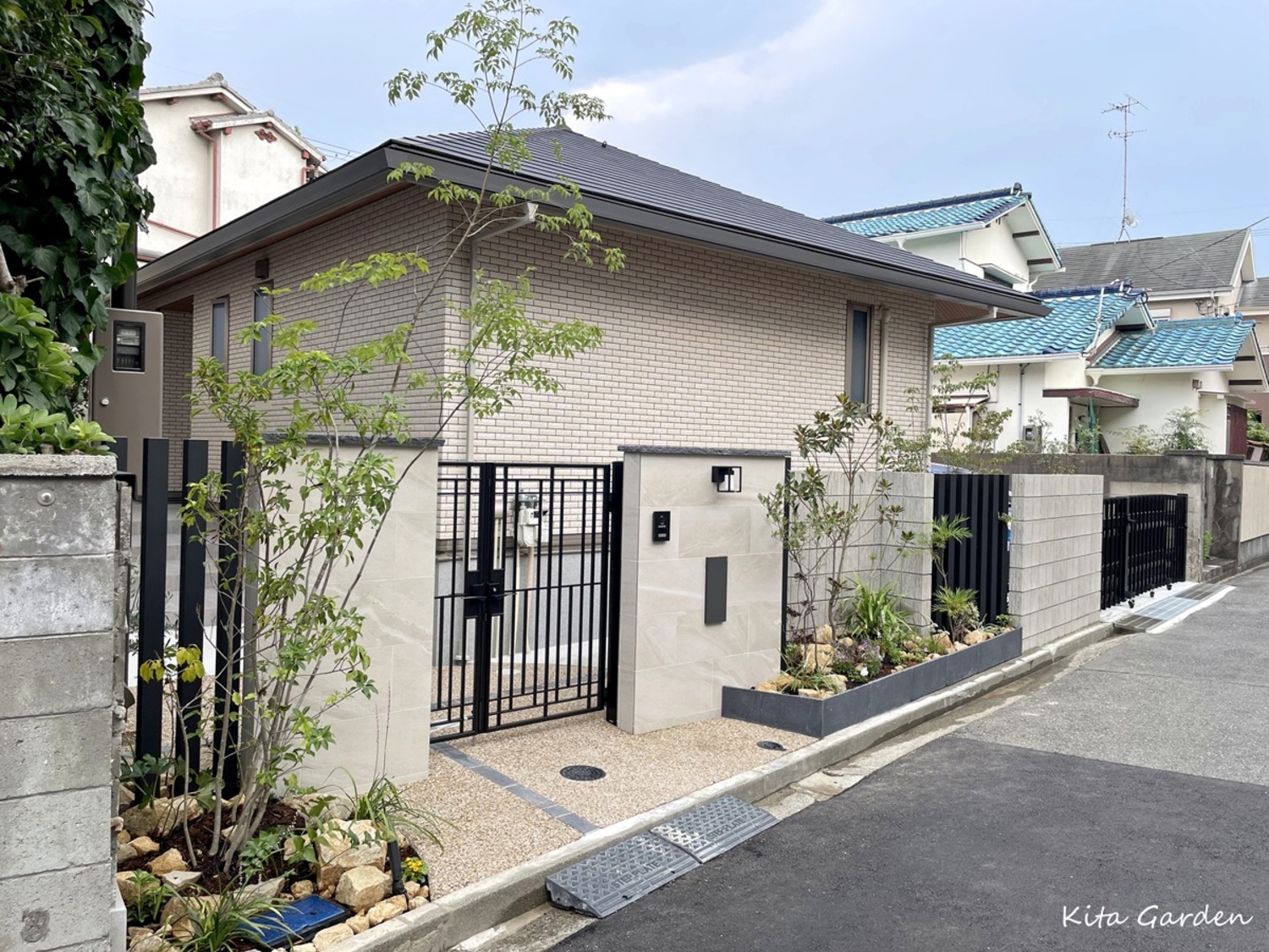 兵庫県尼崎市で、パナソニックホームズの平屋建築に調和する新築外構・庭工事をさせていただきました。