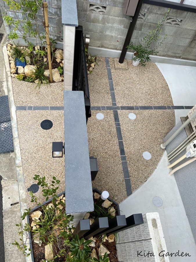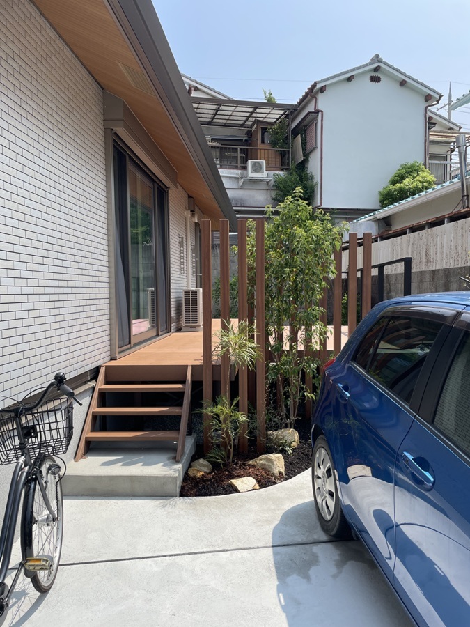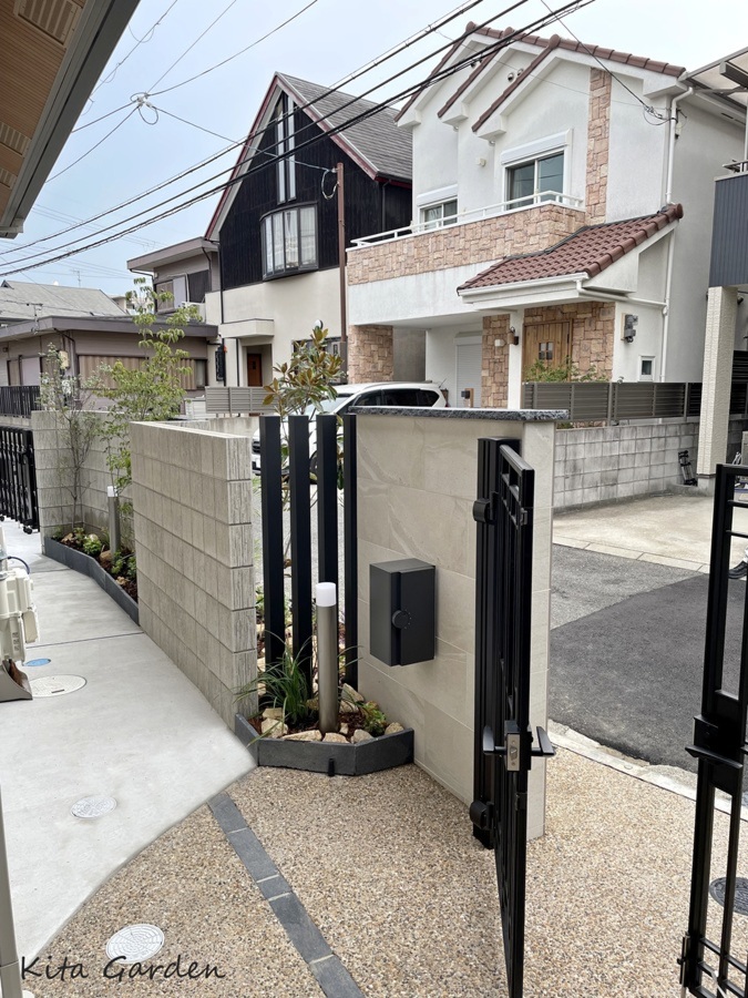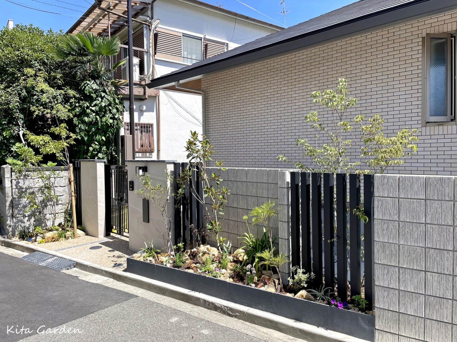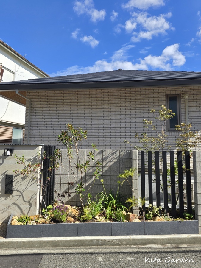 兵庫県尼崎市で、パナソニックホームズの平屋建築に調和する新築外構・庭工事をさせていただきました。