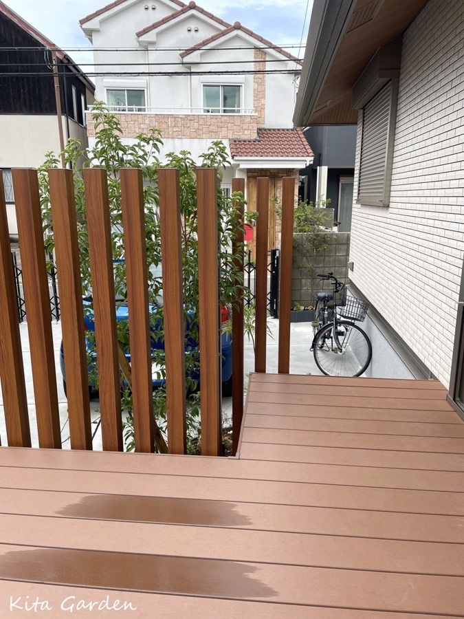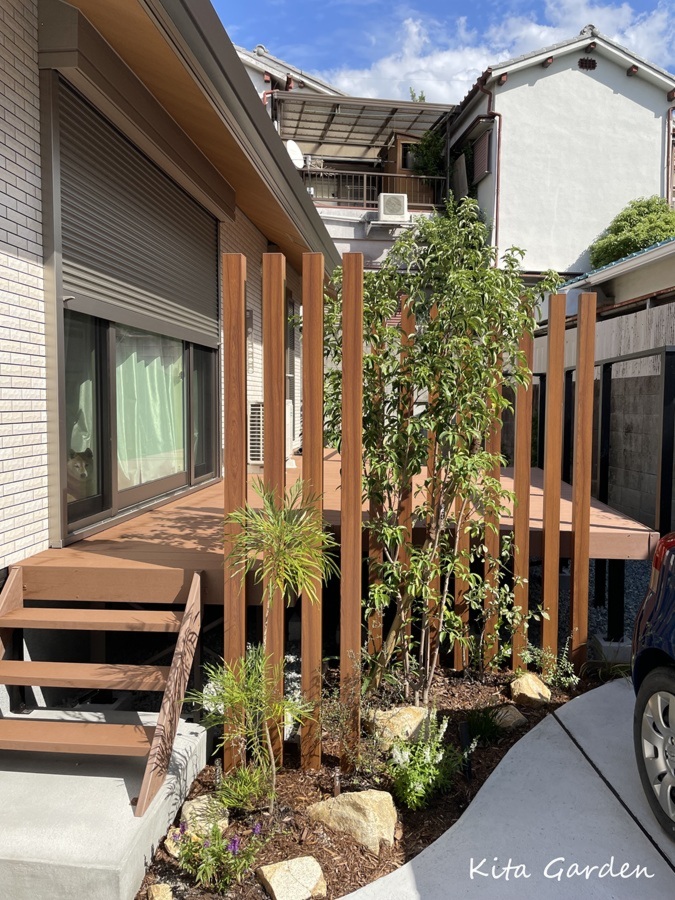 植栽と格子で視線をやわらかく遮る、心地よいプライベート空間