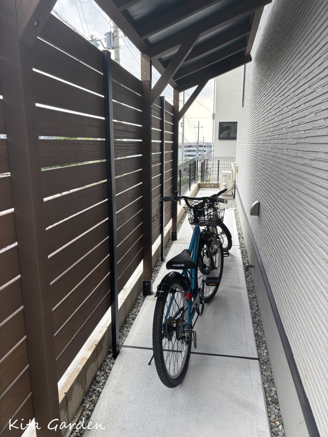 狭いスペースを有効活用!木の温もりあるおしゃれなサイクルポート|茨木市