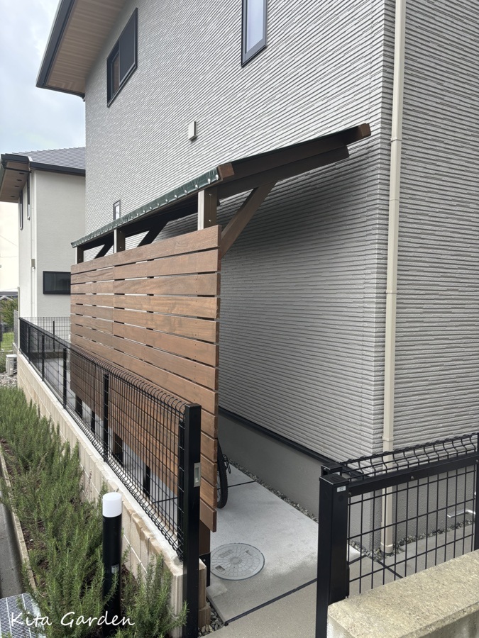 大阪府茨木市で、住まいの雰囲気に調和する木製サイクルポートを設置しました。