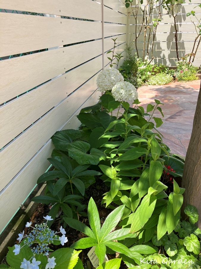 草花や低木、アジサイなどを取り入れ、
