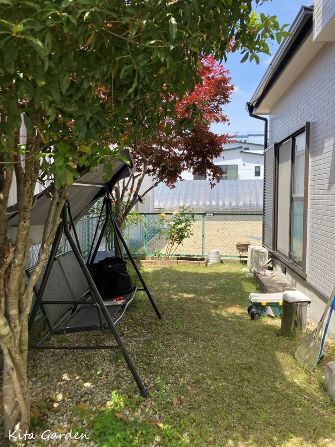 一方で管理が大変だった金木犀は伐採し、空間をすっきりと再構成しました。