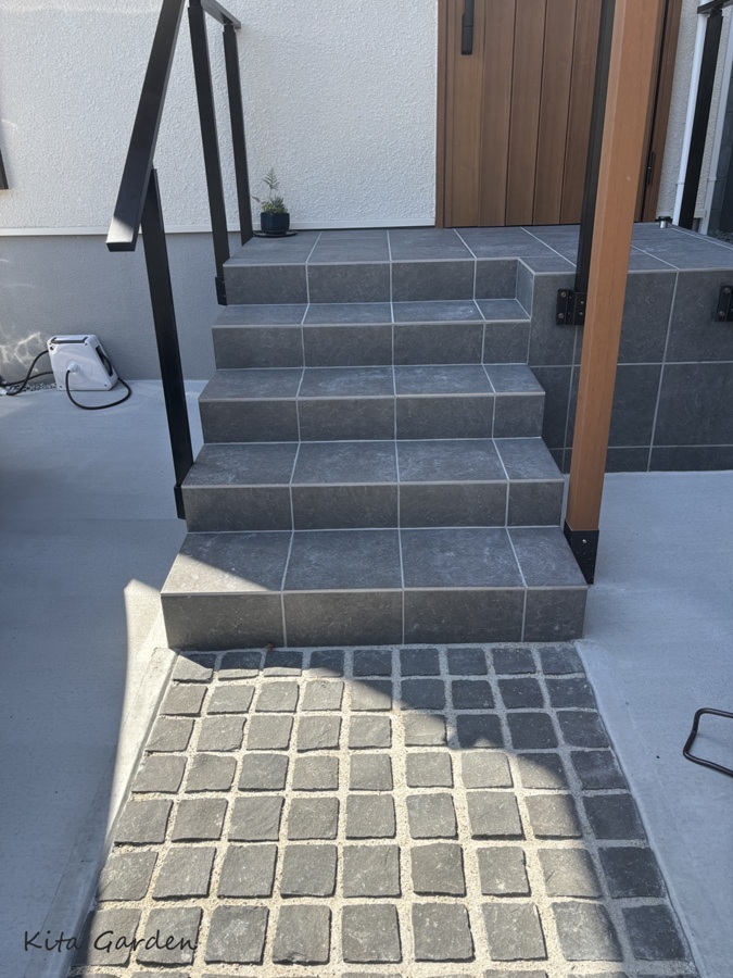 深基礎(通常より深い土台)の住宅のため、玄関前には高低差があり、階段でのアプローチ計画が必要でした。