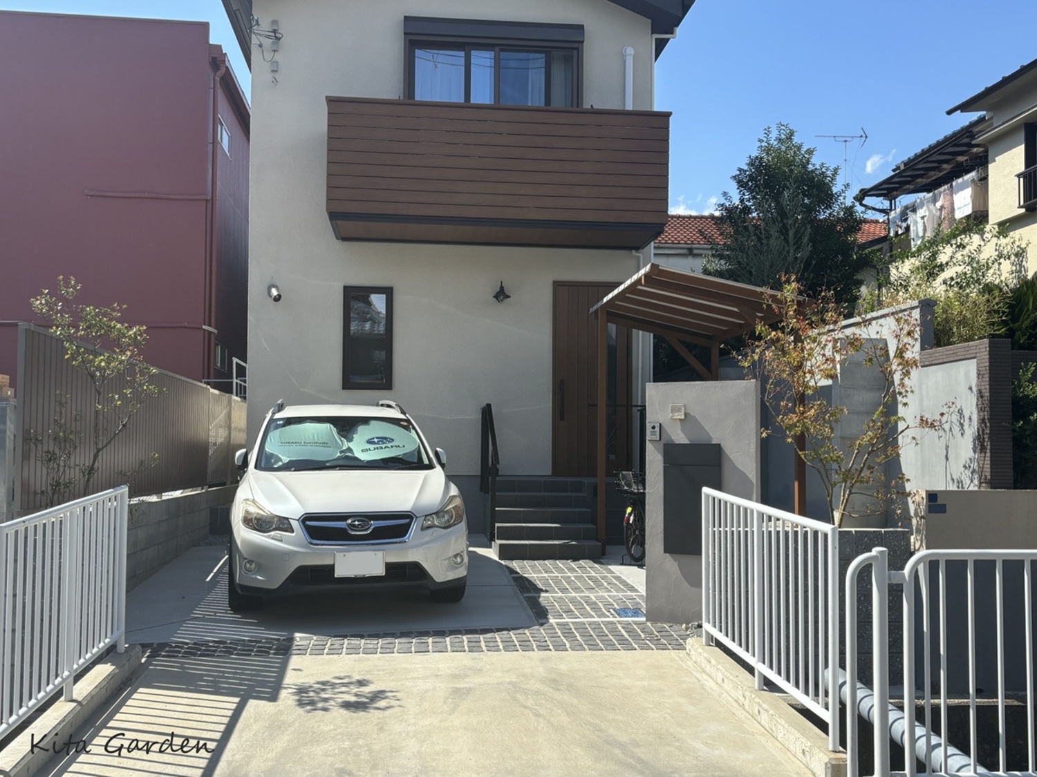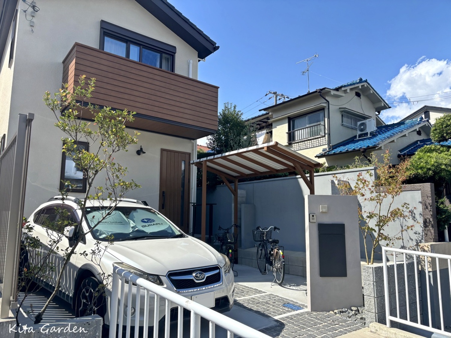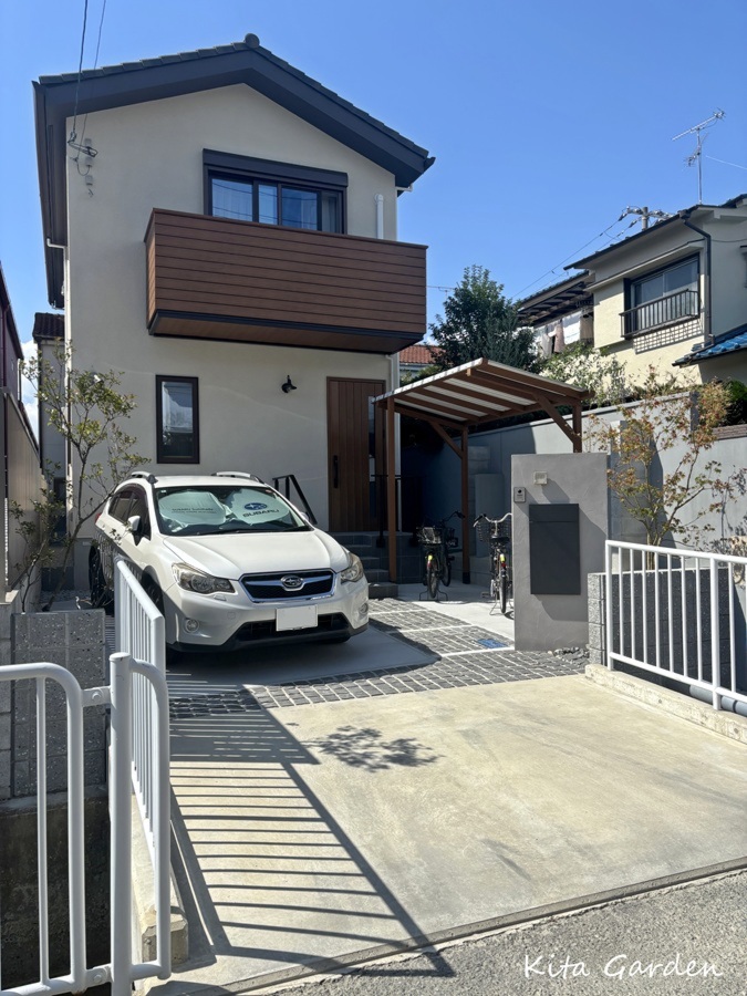 兵庫県尼崎市にて、三井ホームの木の風合いを活かした住宅に調和する新築外構を施工しました。