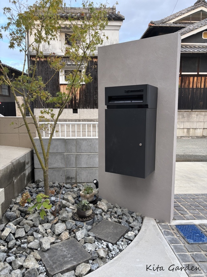 ポストにはLIXILの宅配ボックス(KN型)を採用し、機能性とデザイン性を両立しています。