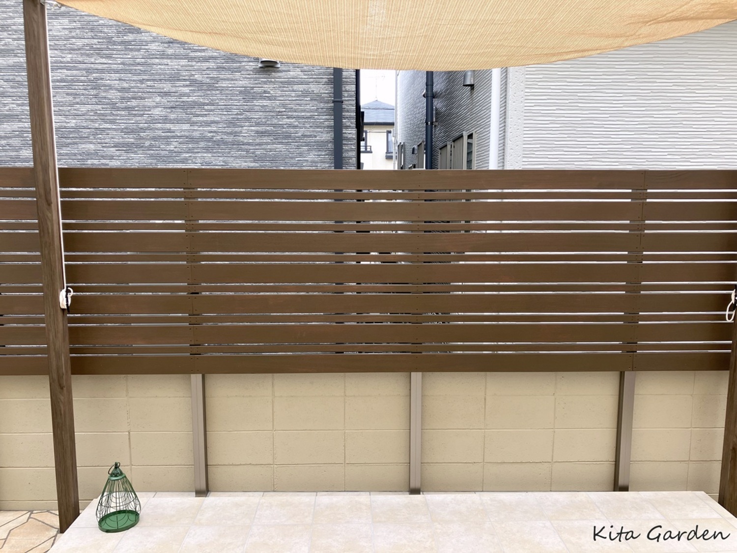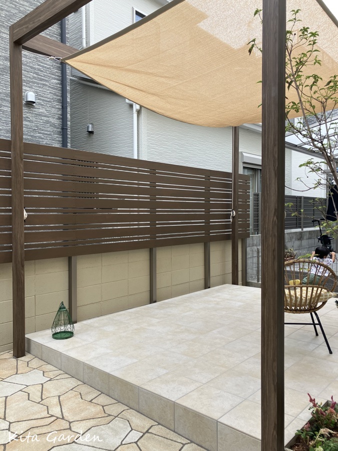 異素材の組み合わせによって、空間に奥行きを感じられるテラスとなりました。