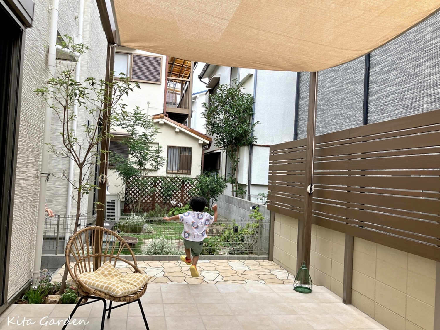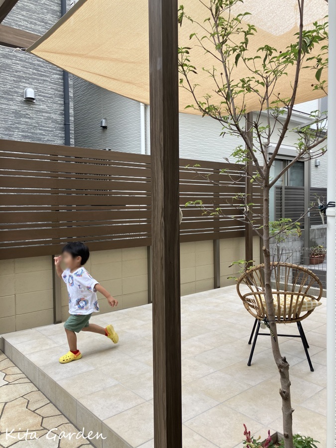 お子様がのびのびと走り回れる開放的なテラスとなり、外でありながら“室内の延長”のように感じられる、心地よいガーデン空間へと生まれ変わりました。