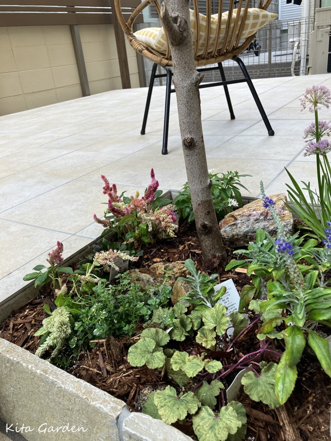 また、テラスと高さを揃えた花壇を設けることで、管理のしやすさに配慮しながら、草花がより引き立つように。
