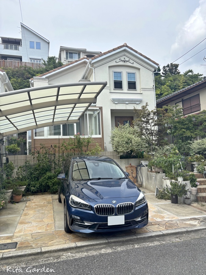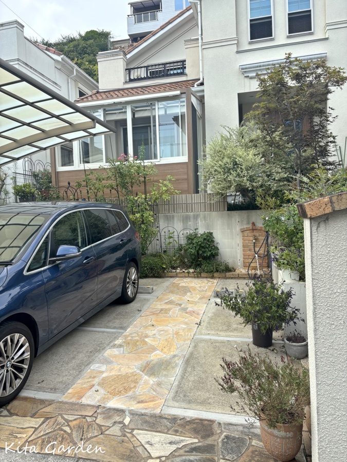 ガレージはコンクリートと芝生が混在し、芝生部分の管理が大変でした。