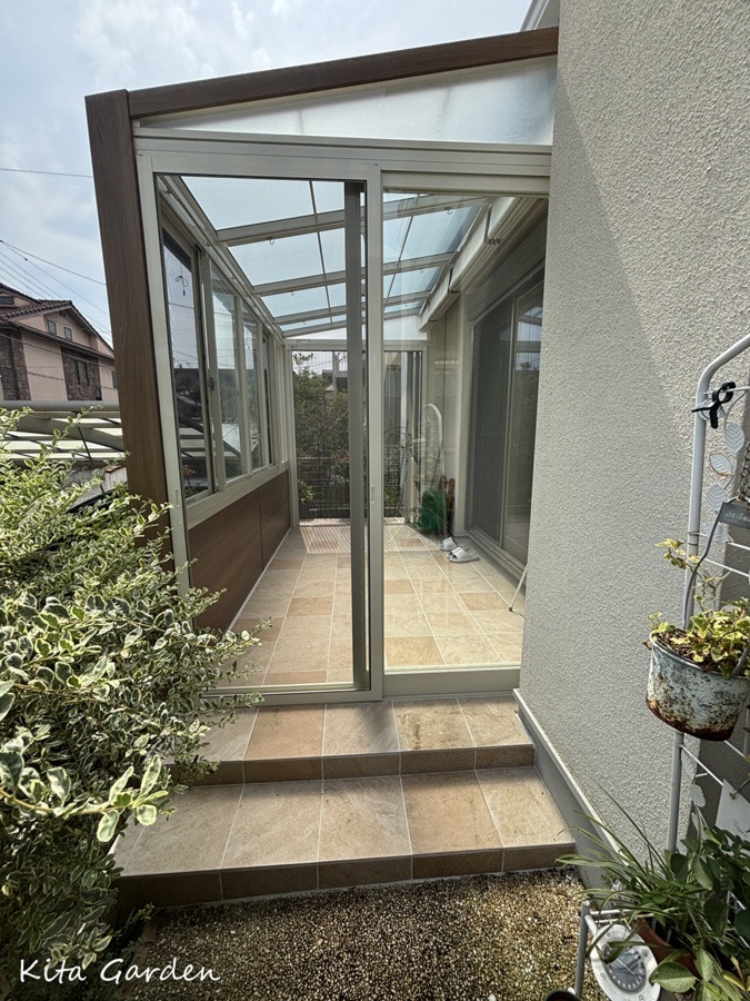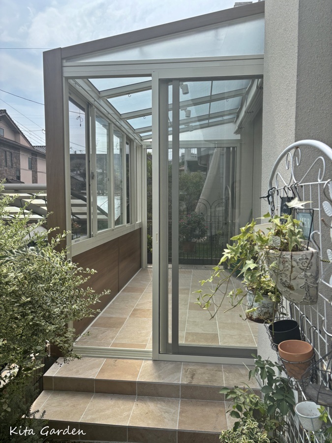 暮らしを楽しむガーデンルーム付きお庭リフォーム事例|宝塚市