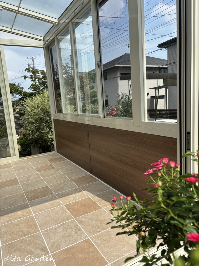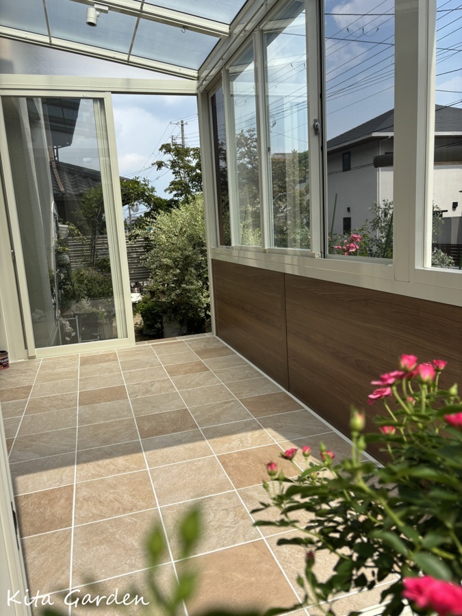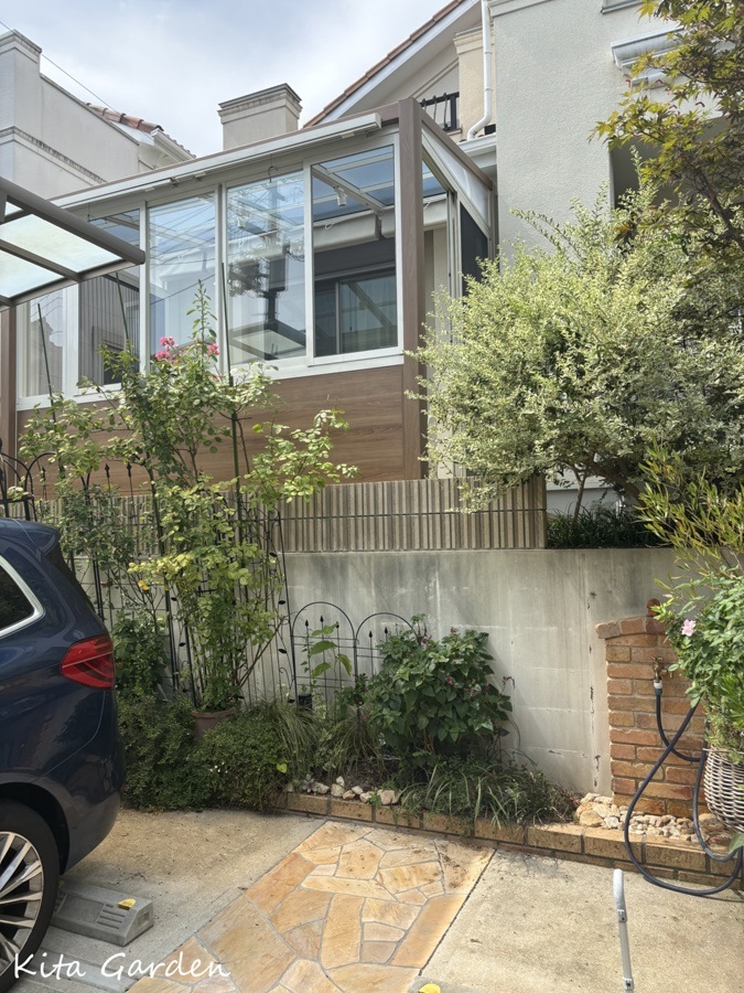 お花の教室も楽しめるガーデンルーム(サンルーム)のあるおしゃれなお庭へとリフォームしました。